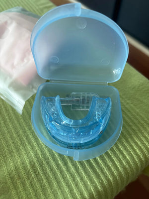 Tired of waking up your loved one with loud snoring? Our mouth guard gently aligns your jaw to keep airways open, reducing snoring and allowing both you and your partner to enjoy a peaceful night's sleep.
