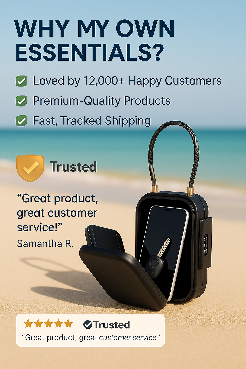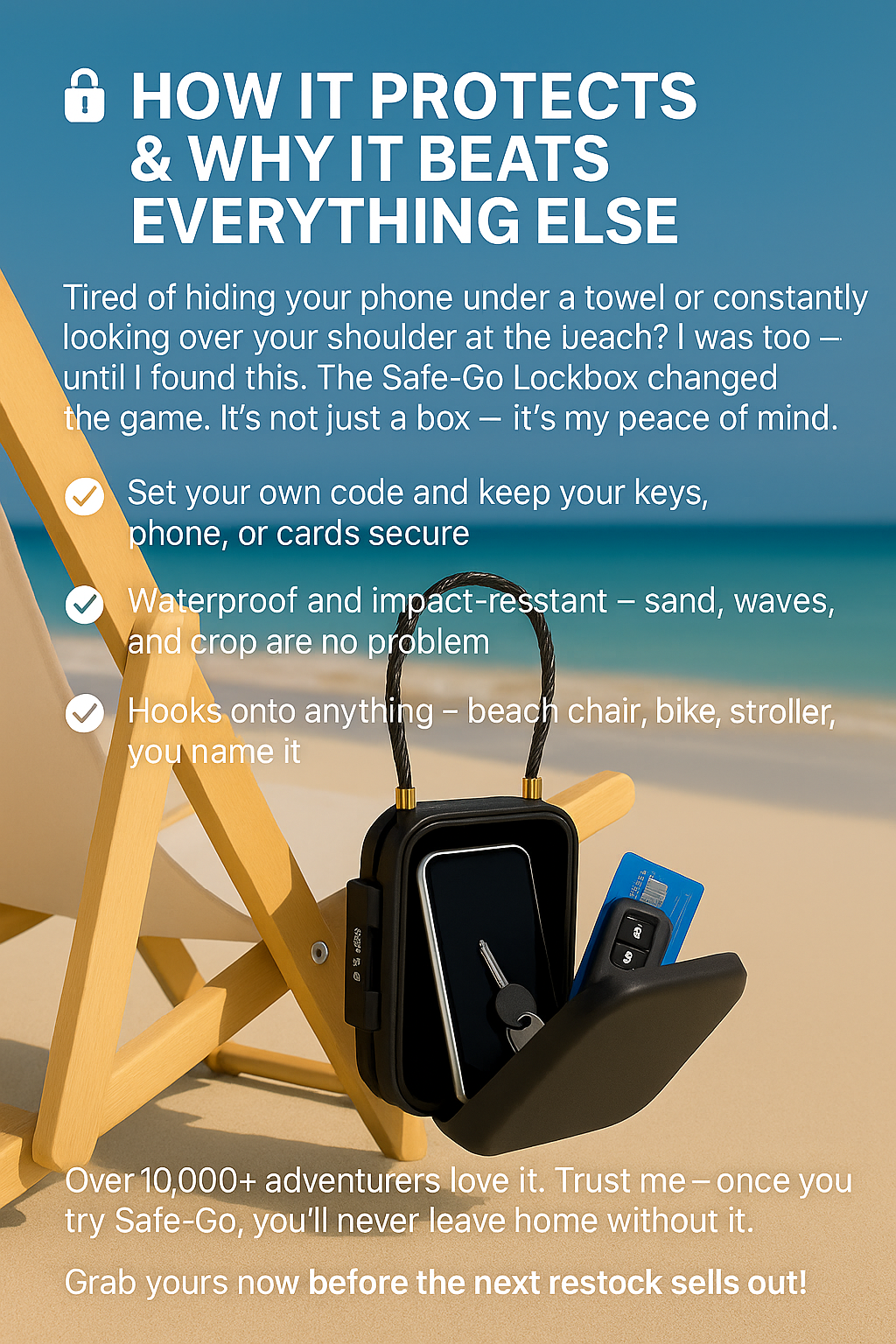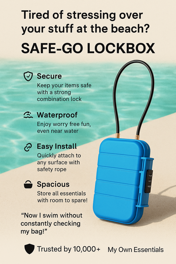 Tired of stressing over your stuff at the beach? The Safe-Go™ Lockbox keeps your phone, wallet, and keys secure with a waterproof, combo lock design — so you can relax and enjoy the moment. 💬 “Now I swim without constantly checking my bag!”